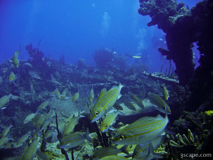 Picture of Lots of Grunts around the wreck in gallery Scuba Diving The Rhone (Salt Island).