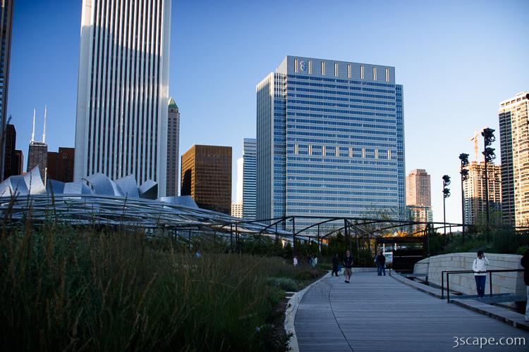 Picture of Lurie Garden, and pavillion in the background in gallery Millennium Park.