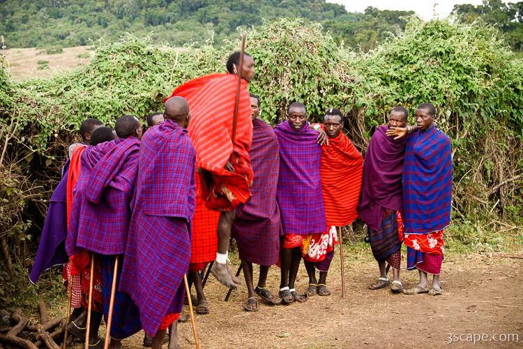 Picture of Maasai men performing a welcome dance in gallery Ngorongoro Crater (part 2).