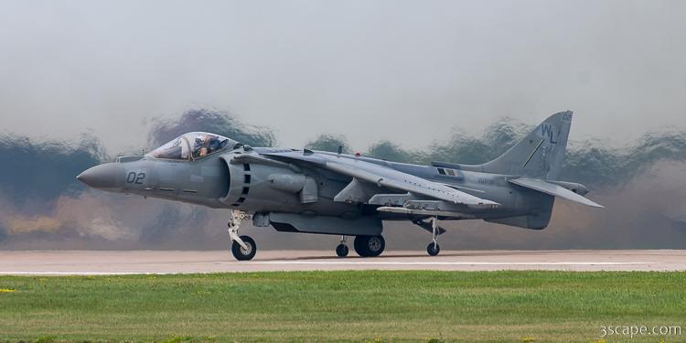 US Navy AV-8B Harrier upon vertical landing at the Oshkosh air show in Wisconsin.