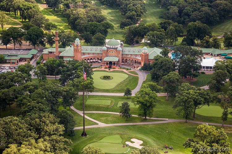 Medinah Country Club is a private country club in Medinah, Illinois, with nearly 600 members and 640 acres containing three golf courses, Lake Kadijah, swimming facilities and a Byzantine-style, mosque-evoking clubhouse with Oriental, Louis XIV and Italian architectural aspects. Medinah is widely known for its Course 3, now at 7,657 yards which has hosted five major championships: three U.S. Opens (1949, 1975, 1990) and two PGA Championships (1999, 2006), as well as the Ryder Cup in 2012.