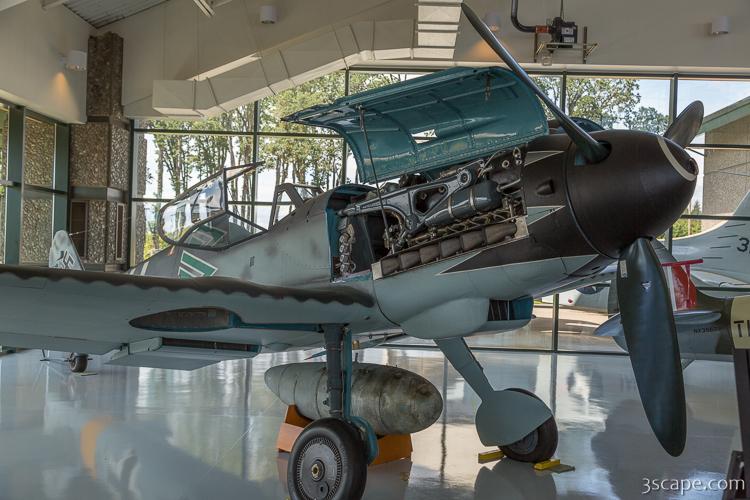 The Messerschmitt Bf 109 is a German World War II fighter aircraft that was the backbone of the Luftwaffe's fighter force. The Bf 109 first saw operational service in 1937 during the Spanish Civil War and was still in service at the dawn of the jet age at the end of World War II in 1945. It was one of the most advanced fighters of the era, including such features as all-metal monocoque construction, a closed canopy, and retractable landing gear. It was powered by a liquid-cooled, inverted-V12 aero engine.