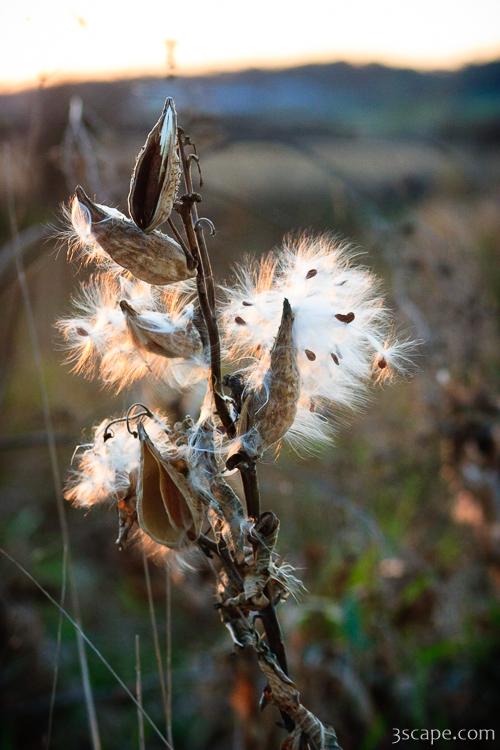 Picture of Milkweed seed pods at sunset in gallery Galena (Part 1).