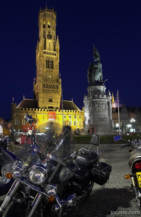 Picture of Motorcycles by the Belfort in gallery Brugge at Night.