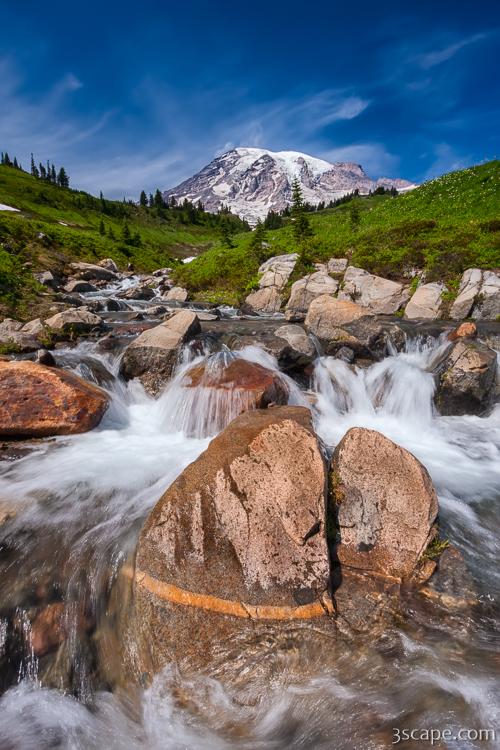 Glacial stream flowing from Mt. Rainier above Myrtle Falls, along the Skyline Trail near Paradise, WA.