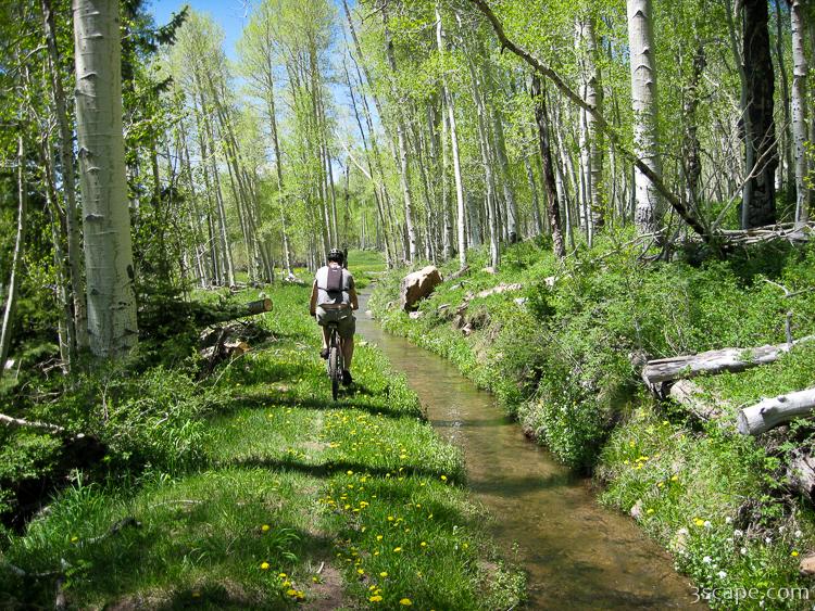Picture of Mountain biking through aspen forest in the La Sal mountains in gallery Biking Burro Pass and Hazard trails.