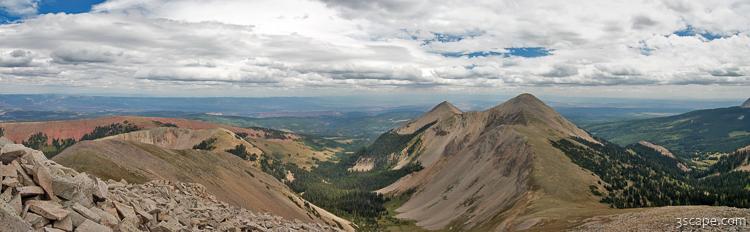 Stitched panoramic image of the La Sal mountains, Manti-LaSal National Forest, near Moab, Utah.