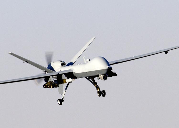 A MQ-9 Reaper unmanned aerial vehicle prepares to land after a mission in support of Operation Enduring Freedom in Afghanistan. The Reaper has the ability to carry both precision-guided bombs and air-to-ground missiles. (U.S. Air Force photo/Staff Sgt. Brian Ferguson)