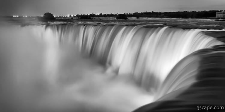 Black and White panoramic version of my popular image - Niagara Falls at Dusk, Ontario, Canada.