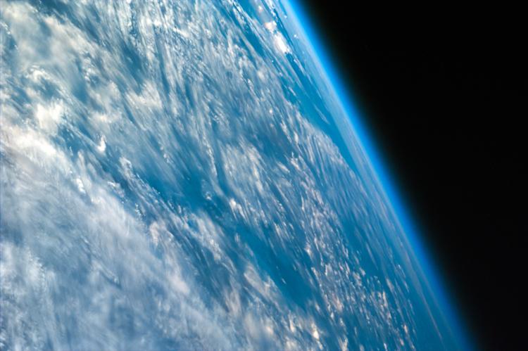 This highly oblique image shot over northwestern part of the African continent captures the curvature of the Earth and shows its atmosphere. You can see clouds and even the occasional thunderhead. Most ISS EarthKAM images are nadir (the center point of the image is directly beneath the lens of the camera), but as you can see this one is not. This image has a high angle because the space shuttle needed to roll on its side for a short time. From space you can understand how thin and fragile the Earth's atmosphere really is and why we need to protect it. Our atmosphere is composed of 78 percent nitrogen, 21 percent oxygen and 1 percent other constituents, and it shields us from nearly all harmful radiation coming from the Sun and other stars. Earth's atmosphere also protects us from meteors, most of which burn up before they can strike the planet. Affected by changes in solar activity, the upper atmosphere contributes to weather and climate on Earth.