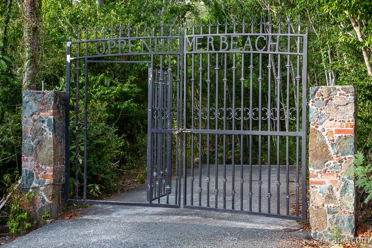 This gate serves as the entrance down to Oppenheimer Beach, a short walk away.
