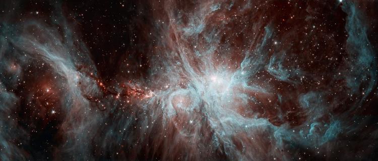 A colony of hot, young stars is stirring up the cosmic scene in this new picture from NASA's Spitzer Space Telescope. The image shows the Orion nebula, a happening place where stars are born. The young stars dip and peak in brightness due to a variety of reasons. Shifting cold and hot spots on the stars' surfaces cause brightness levels to change, in addition to surrounding disks of lumpy planet-forming material, which can obstruct starlight. Spitzer is keeping tabs on the young stars, providing data on their changing ways.