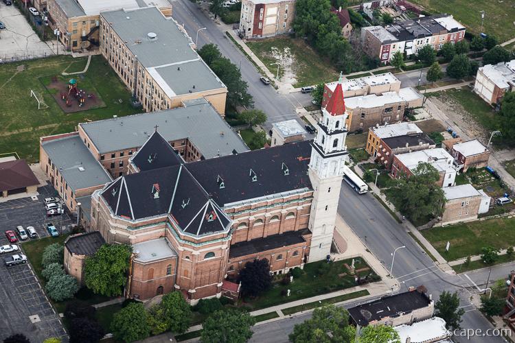 Picture of Our Lady of Sorrows Basilica in gallery Chicago Aerial Photography.