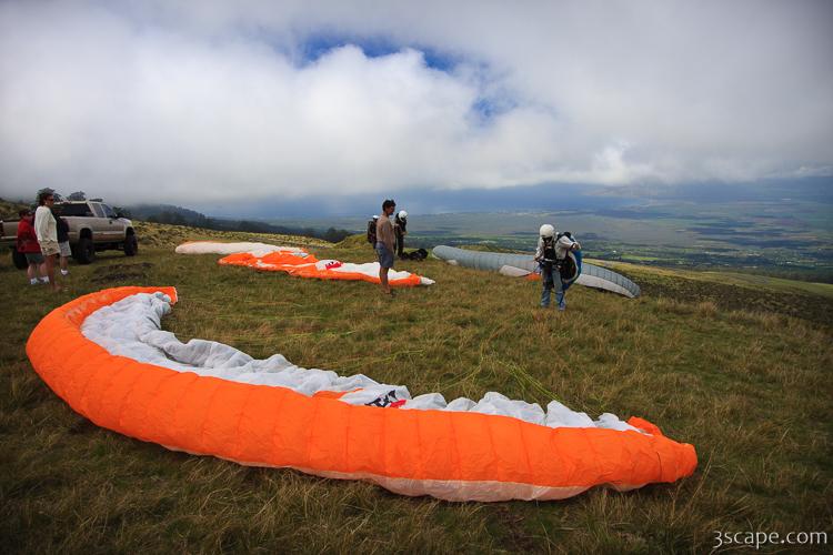 Picture of Paragliders taking off from Haleakala in gallery Maui - Haleakala Volcano.