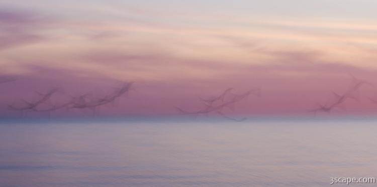 Pastel abstract - flying seagulls at dusk