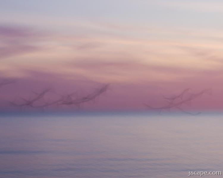 Pastel abstract - flying seagulls at dusk Fine Art Print