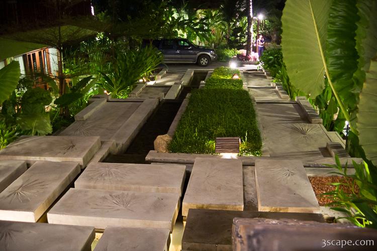 The pathway had large stone blocks on water.