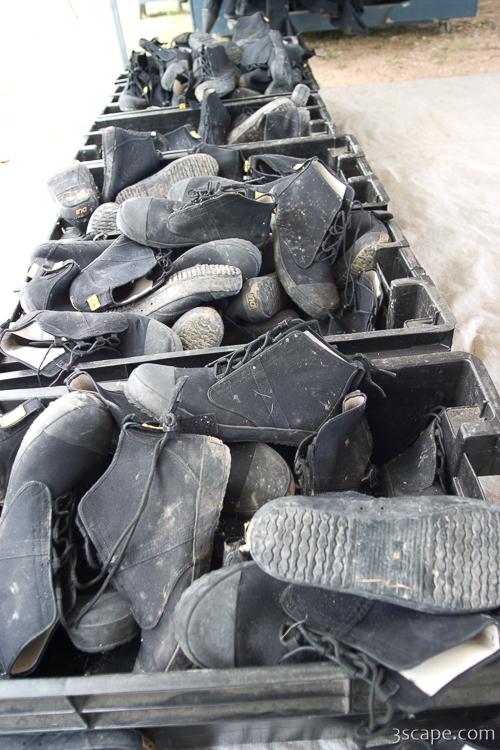 Picture of Piles of drysuit boots in gallery DUI Demo Days - Pearl Lake.