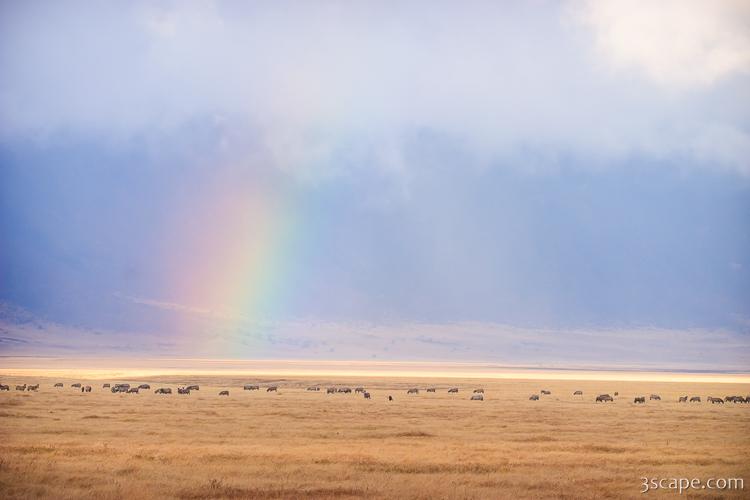 Picture of Rainbow and animals on the crater floor in gallery Ngorongoro Crater (part 1).