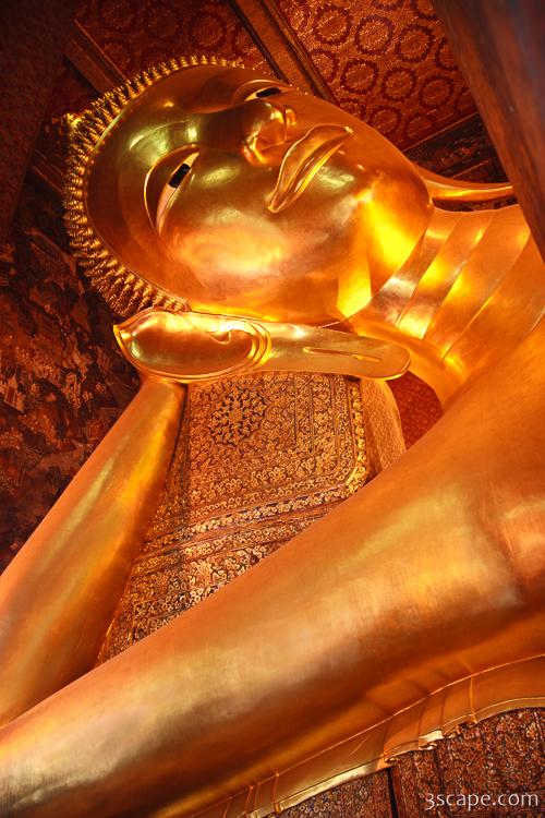Enormous gold Reclining Buddha at Wat Pho, Bangkok, Thailand.