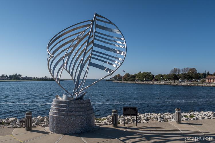 Picture of Reflections Sculpture in Waterfront Park in gallery Ludington and Silver Lake.