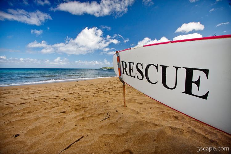 Picture of Rescue surfboard for lifeguard at DT Fleming Beach Park in gallery Around Maui.