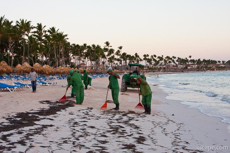 Picture of Resort workers cleaning seaweed off the beach in gallery Punta Cana - Melia Caribe Tropical.
