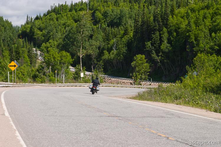 Picture of Riding along twisty route 389 in gallery Trans-Labrador Highway - Baie Comeau to Manic 5.