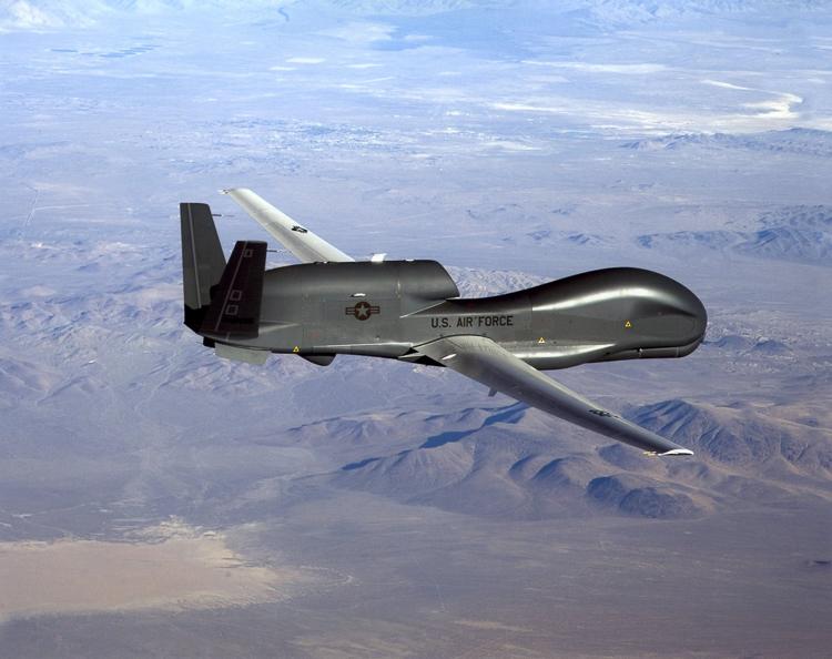 An RQ-4 Global Hawk soars through the skies to record intelligence, surveillence and reconnaissance data. Because of its large coverage area the Global Hawk has become a useful tool for recording data and sending it to warfighters on the ground. (Courtesy photo)