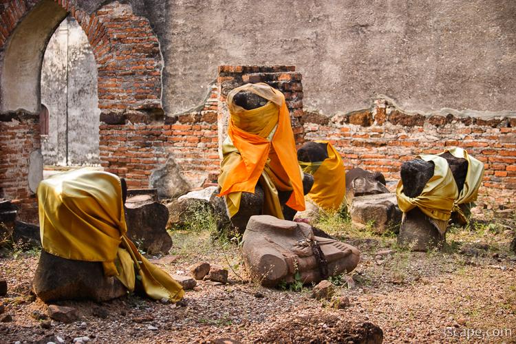 Picture of Ruins of sacred Buddha statues, Wat Phrasrirattanamahathat in gallery Lop Buri.