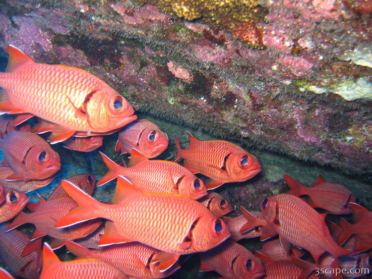 Picture of School of Squirrelfish in gallery Maui Scuba Diving - Molokini Crater.