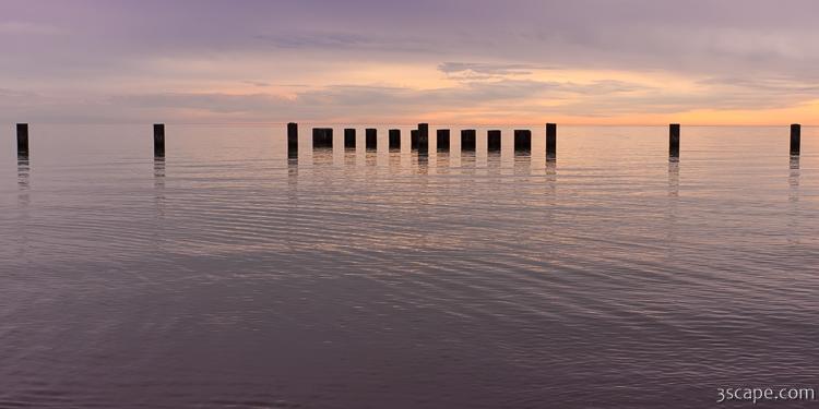 Though Lake Michigan can be fierce, on this day, the water was calm as can be. This simple composition takes the lines of old pylons against a horizon of subtle sunrise color. Not all Chicago photography has to be of the skyline. :)