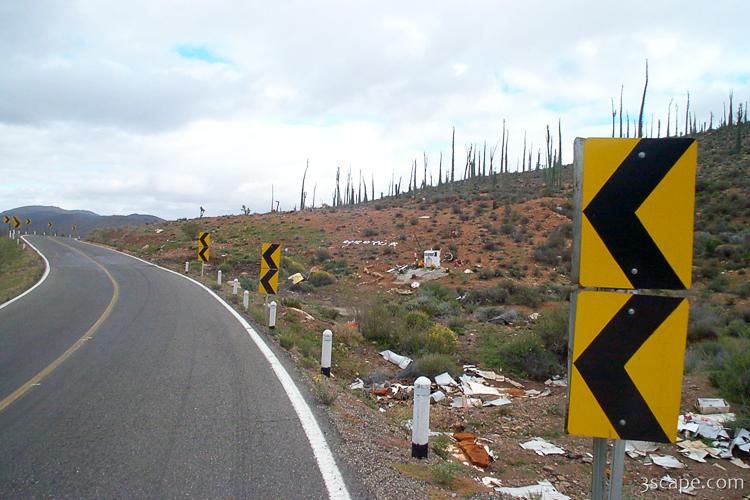 Picture of Sharp turns and roadside memorials in gallery Ensenada to Catavina.