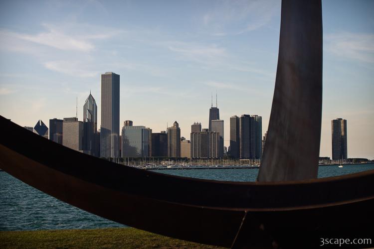 Picture of Skyline through sundial in gallery Adler Planetarium and Chicago Skyline.