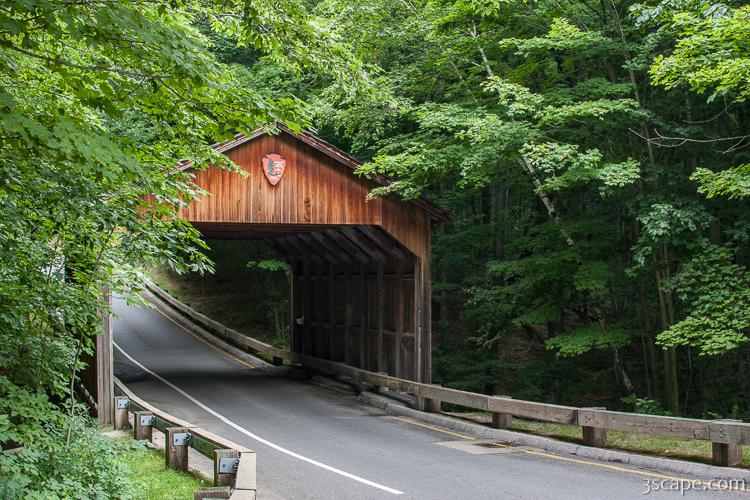 The covered bridge was one of the picturesque details that Pierce Stocking included in the Scenic Drive. Covered bridges, usually associated with New England and Pennsylvania, were developed to protect wooden bridges from rain and snow, which can cause rotting of the timbers. It was cheaper to repair the roof than to build a new bridge.