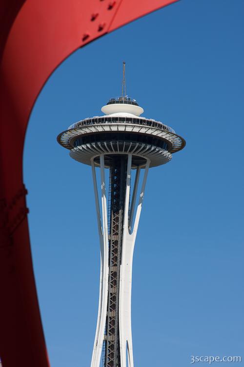 Picture of Space Needle under the Eagle sculpture, Olympic Sculpture Park in gallery Seattle Area.