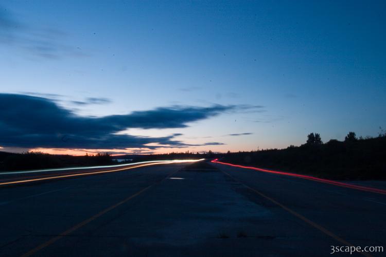 Picture of Spooky lights running through deserted town of Gagnon in gallery Trans-Labrador Highway - Manic 5 to Goose Bay.