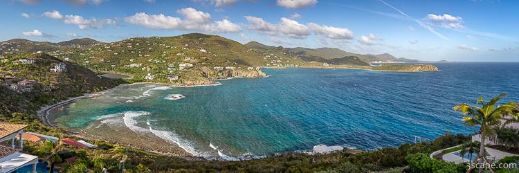 This large panoramic image was captured from Bovocoap Point on St. John in the US Virgin Islands, and shows the beautiful and rugged South coast of the island. This includes Hart Bay, Rendezvous Bay, Monte Bay, and Klein Bay.