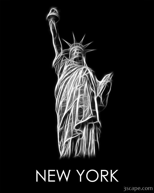 Black and white fractal abstract of the Statue of Liberty in New York City. Great as a poster, or any print product!