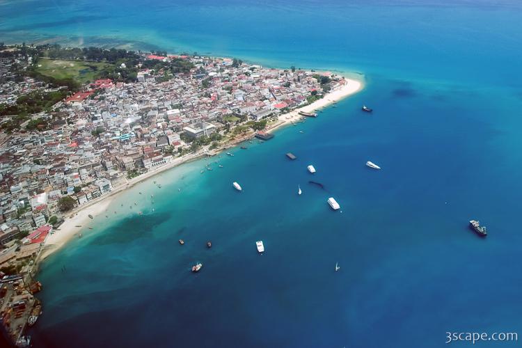 Aerial view of Stone Town, Zanzibar, off the coast of Tanzania.