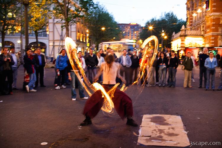 Picture of Street performer showing off fire ropes in gallery Amsterdam (Part 2).