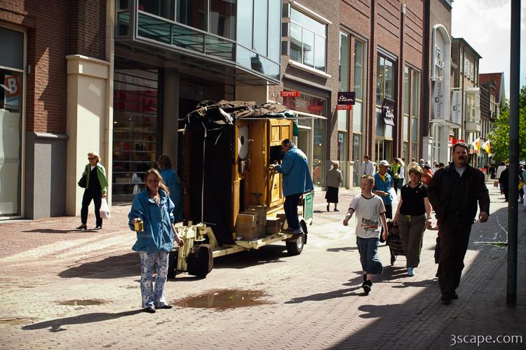 Picture of Street performers with a musical trailer in gallery Helmond.