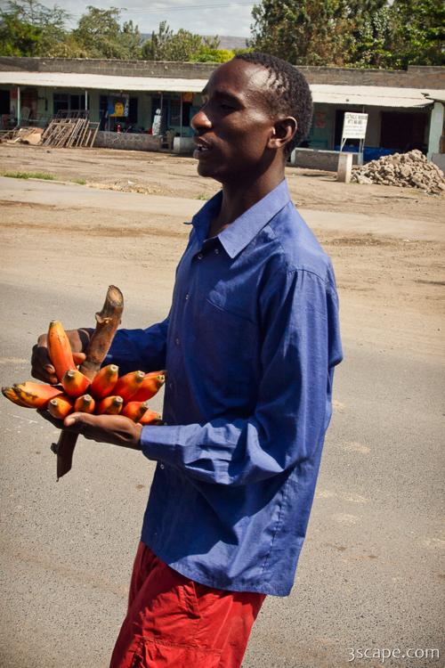 This guy sold us some red bananas.