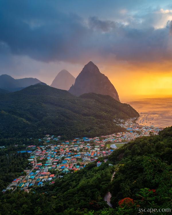 Picture of Sunset over Soufriere in gallery St. Lucia.
