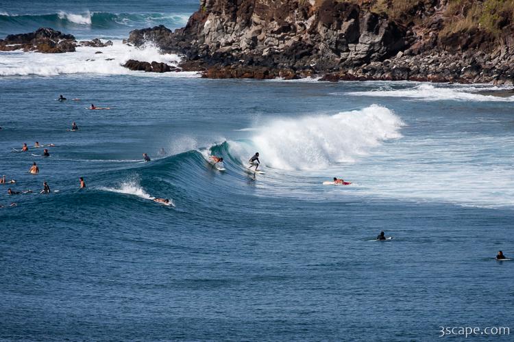 Surfer cutting a wave on Maui's north shore - Hookipa