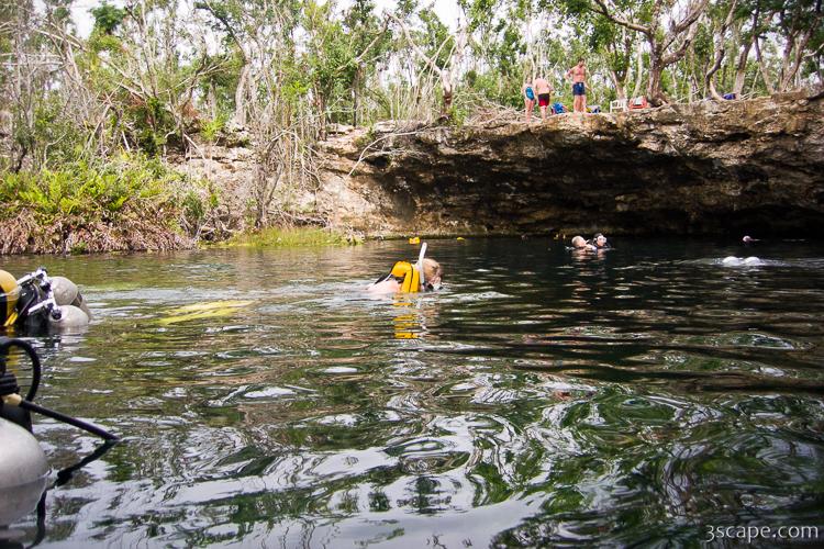 Picture of Swimmers and divers at Garden of Eden Cenote in gallery Playa Del Carmen and Iberostar Resort.