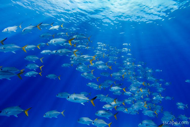 Picture of Swimming through a school of Horse-eye Jack fish in gallery Scuba Diving Grand Cayman.