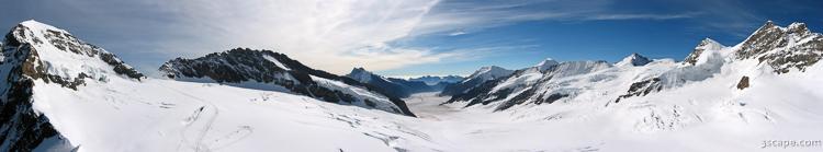 Panoramic view of the Swiss Alps, Monch on the left and Jungfrau on the right.