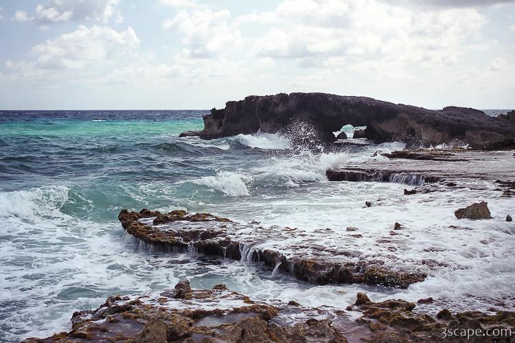 The Atlantic side of Cozumel is rocky with many natural bridges