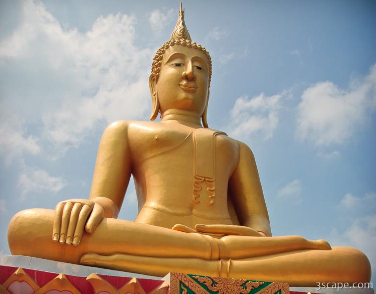 Enormous gold sitting Buddha at Wat Phra Yai on the island of Koh Samui, Thailand.